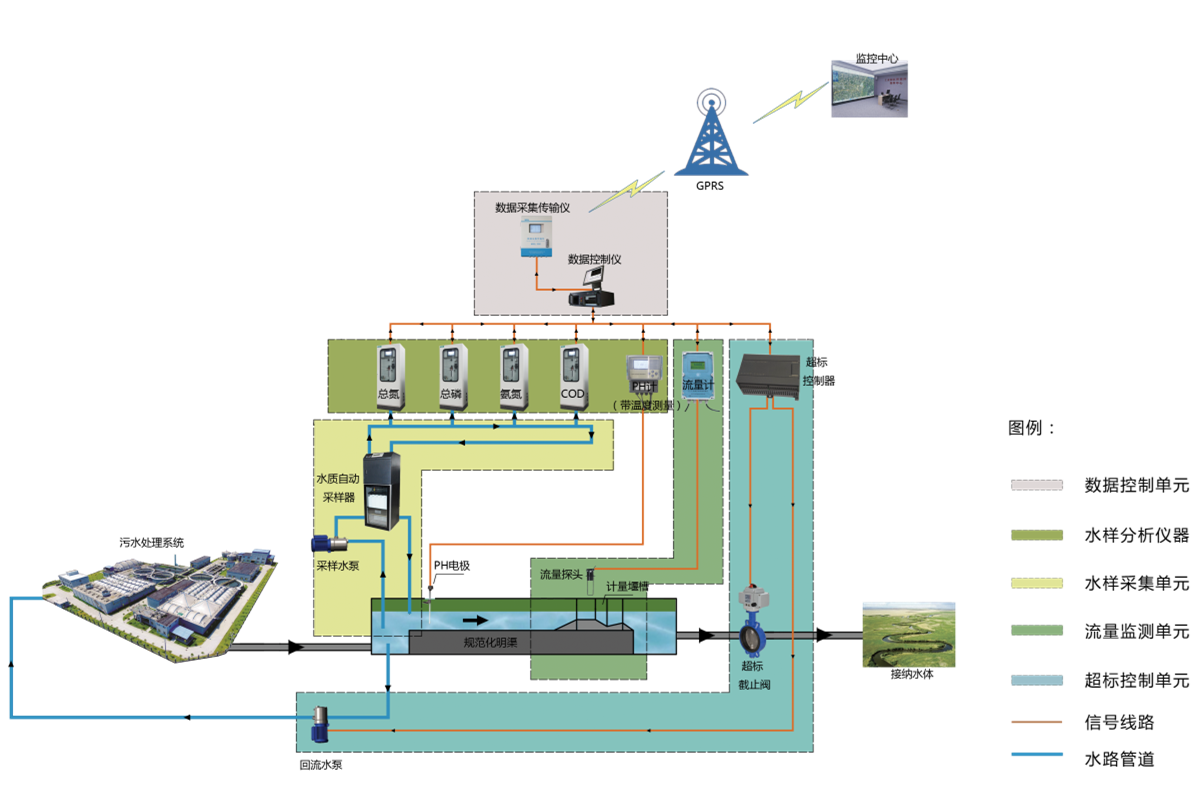 08The pollution source water quality online monitoring system is suitable for the needs of various sewage discharge companies to monitor and control the pollution source water quality. The system is designed in accordance with the 2020 National Technical Specifications (HJ353-2019) and other standards. It is a system composed of software and hardware facilities that implement functions such as water pollution source flow monitoring, water pollution source water sample collection, analysis, and analysis data statistics and uploading. The system has the functions of real-time collection, transmission, management, quality control, and reverse control of monitoring data. It also has the function of analyzing the operation of water quality treatment facilities and controlling the total amount of sewage discharge.