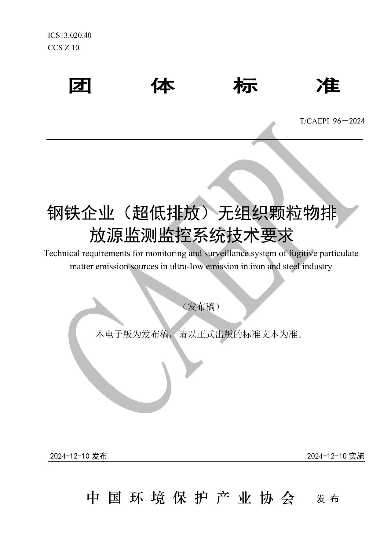 The group standards, "Technical guidelines for inventories preparation of fugitive particulate matter emissions sources in ultra-low emission in iron and steel industry" and "Technical requirements for monitoring and surveillance system of fugitive particulate matter emission sources in ultra-low emission in iron and steel industry", in which SDL participated in the compilation, were released and implemented on December 10, 2024. These standards can be used to guide iron and steel enterprises in carrying out tasks such as the treatment of fugitive particulate matter emissions and the assessment and monitoring of ultra-low emissions.