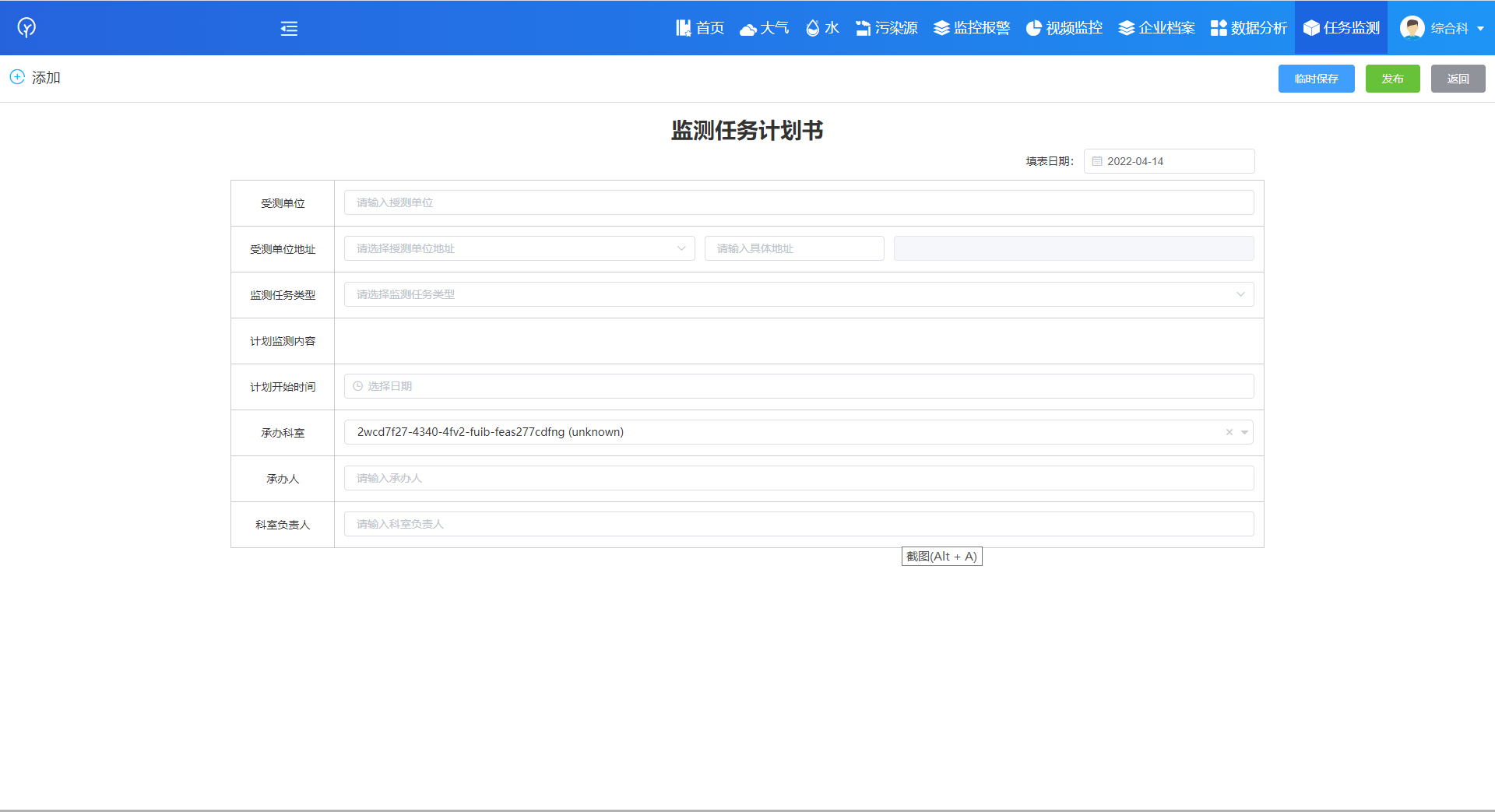 Combined with the individual needs of district and county ecological environment business management, and with the overall idea of ??"environmental monitoring - hierarchical early warning - task disposal", a closed-loop management of environmental problems from automatic identification to solution is realized; the platform focuses on prominent water and gas environmental issues. Conduct in-depth situation and decision-making analysis, improve the data analysis capabilities of grassroots environmental protection personnel, and use scientific methods and means to effectively solve district and county environmental problems.
