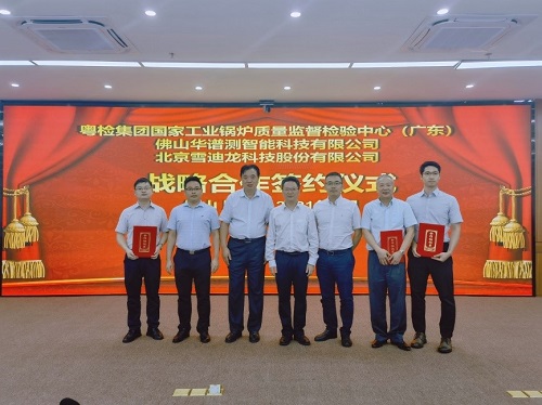 為積極響應(yīng)國(guó)家碳達(dá)峰、碳中和發(fā)展戰(zhàn)略決策,發(fā)揮各自核心技術(shù)優(yōu)勢(shì),加強(qiáng)碳排放在線監(jiān)測(cè)技術(shù)創(chuàng)新,積極推動(dòng)技術(shù)轉(zhuǎn)化,為“雙碳”目標(biāo)實(shí)現(xiàn)賦能。廣東省檢驗(yàn)檢測(cè)認(rèn)證研究院集團(tuán)有限公司(粵檢集團(tuán))的國(guó)家工業(yè)鍋爐質(zhì)量監(jiān)督檢驗(yàn)中心(廣東),與佛山華譜測(cè)智能科技有限公司、北京雪迪龍科技股份有限公司三方建立戰(zhàn)略合作伙伴關(guān)系,并于7月30日在廣東省特種設(shè)備檢測(cè)研究院順德檢測(cè)院正式簽約。在粵檢集團(tuán)黨委委員、副總經(jīng)理郭晉、華南理工大學(xué)成果轉(zhuǎn)化辦公室副主任詹勇、雪迪龍公司董事長(zhǎng)敖小強(qiáng)、華譜測(cè)公司總經(jīng)理姚順春等領(lǐng)導(dǎo)的見(jiàn)證下,國(guó)家工業(yè)鍋爐質(zhì)量監(jiān)督檢驗(yàn)中心(廣東)常務(wù)副主任李越勝、華譜測(cè)總經(jīng)理助理莫爵徽與北京雪迪龍助理總裁謝濤現(xiàn)場(chǎng)簽署了三方戰(zhàn)略合作協(xié)議。