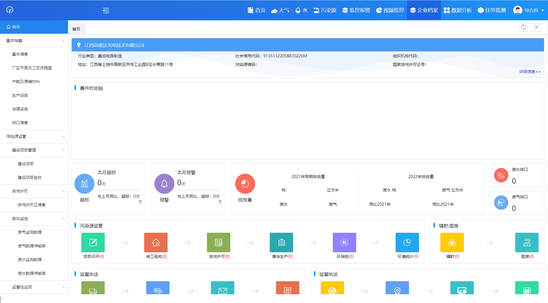 一企一檔:整合污染源監(jiān)測、監(jiān)管信息,形成全局一套數(shù),為環(huán)保部門執(zhí)法和日常管理提供支持。