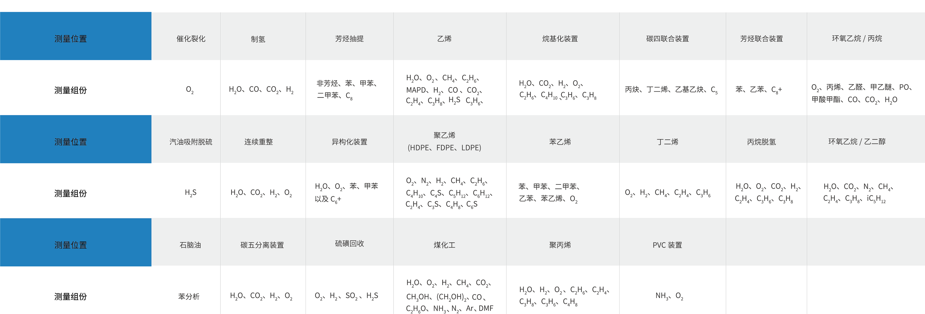 石化化工行業(yè)工藝復(fù)雜、產(chǎn)品多樣,是我國(guó)國(guó)民經(jīng)濟(jì)的基礎(chǔ)和支柱產(chǎn)業(yè)。在線分析儀表通常也被稱為質(zhì)量分析儀表,主要用于石化化工行業(yè)生產(chǎn)過(guò)程中原料、中間物料、成品需要監(jiān)測(cè)和控制的各種成分的定性定量分析,以及工廠污染源排放(鍋爐、煙囪等)監(jiān)測(cè),裝置區(qū)和廠界空氣質(zhì)量的監(jiān)測(cè)。通過(guò)對(duì)O?、H?、CO、CO?、N?、H?S、NO、NO?、N?O等無(wú)機(jī)成分,以及C1、C2、C3、C4、C5、C6、C6+等有機(jī)成分的在線監(jiān)測(cè),為過(guò)程設(shè)備的優(yōu)質(zhì)高效、安全生產(chǎn)、節(jié)能降耗提供了重要保證。