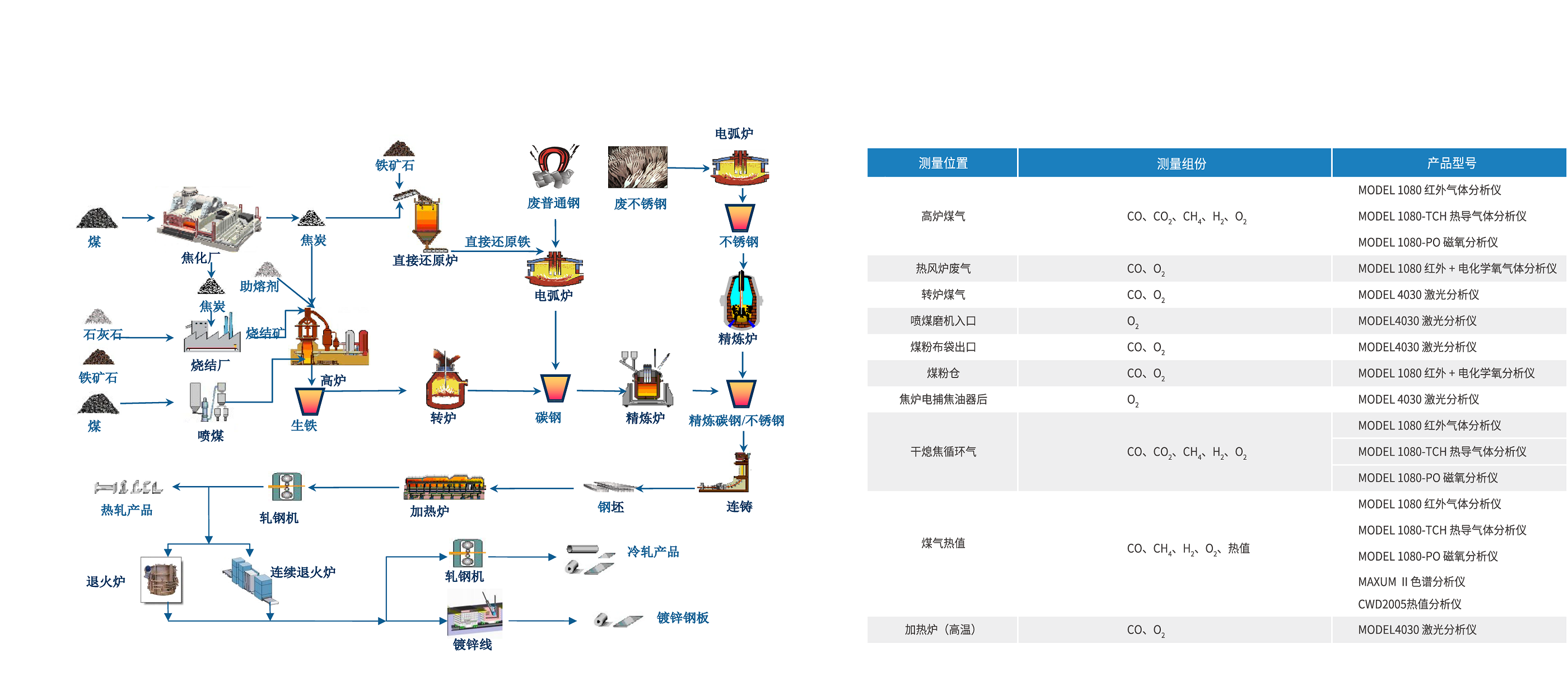 鋼鐵行業(yè)是我國重要的支柱產(chǎn)業(yè)之一,但其高能耗、高污染的特點也給生態(tài)環(huán)境帶來了嚴(yán)重的威脅。鋼鐵行業(yè)具有產(chǎn)業(yè)鏈長、工序復(fù)雜、資源消耗量大等特點,其排放的廢氣、廢水具有排放量大、污染源多、污染面廣和無組織排放多等突出特點。雪迪龍結(jié)合實踐經(jīng)驗推出鋼鐵冶金行業(yè)過程氣體分析解決方案,滿足鋼鐵行業(yè)在環(huán)保形勢下的監(jiān)測需求,為節(jié)能減排、工藝流程優(yōu)化、環(huán)保節(jié)能、安全控制、超低排放評估提供實時有效的數(shù)據(jù)。